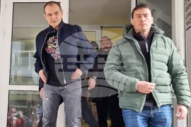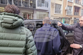 София (19 януари 2024) Бизнесменът Васил Божков (ляво) придружен от полицията за разпит като свидетел в Столичната дирекция на вътрешните работи (СДВР).
