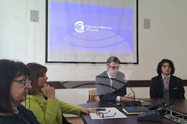 София (19 януари 2024) В сградата на Министерство на финансите, заместник-министърът на Ивайло Яйджиев (втори отдясно) представя победителя в конкурса за избор на лого, слоган и разработване на бранд книга (бранд бук) на кампанията за присъединяването на България към еврозоната. На снимката: победителят Георги Георгиев - Аршата (дясно), директорът на Дирекция „Връзки с обществеността и протокол” в МФ Татяна Пройчева (втора отляво).
