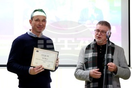 София (22 януари 2024) В Столичната библиотека се провежда церемония по връчване на Деветите „Годишни награди“ Писател на годината & Читател на годината за 2023-та година. На снимката: грамота за най-четен автор на научна и научнопопулярна литература получава проф. д.ф.н. Цочо Бояджиев.