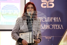 София (22 януари 2024) В Столичната библиотека се провежда церемония по връчване на Деветите „Годишни награди“ Писател на годината & Читател на годината за 2023-та година. На снимката: грамота от Столична библиотека за Читател на годината получава Ирена Въжарова.
