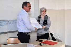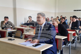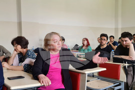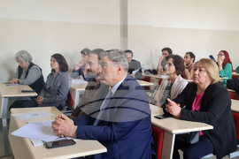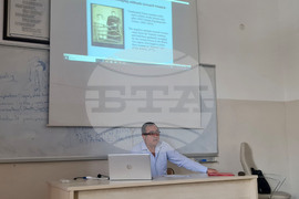 Анкара (2 април 2024) Проф. Иван Русев от Икономически университет - Варна участва в конференция в Анкарския университет. Сред присъстващите са деканът на Факултета по езици, история и география проф. д-р Левент Каяпънар, Историкът, проф. д-р Айше Каяпънар, кореспондентът на БТА в Анкара Нора Чолакова (вдясно).
