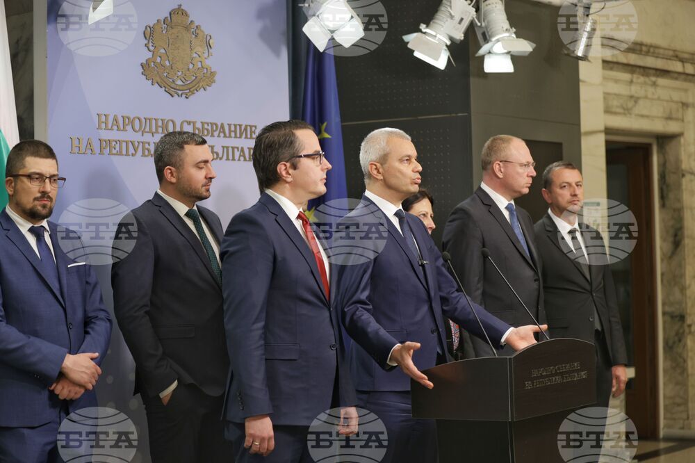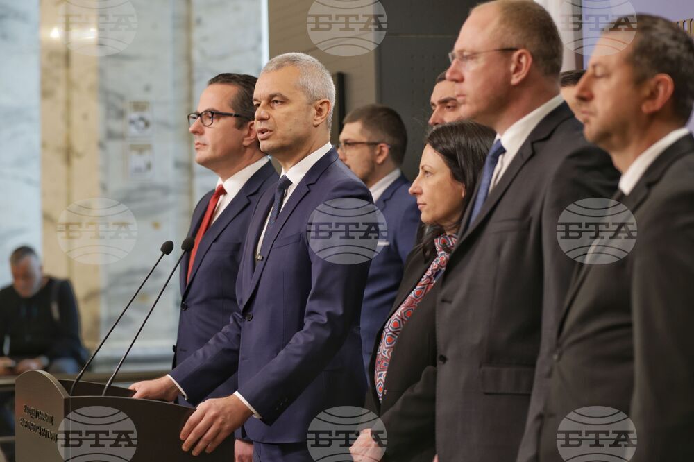 София (4 април 2024) Парламентарната група на „Възраждане“ дава пресконференция в сградата на Народното събрание. На снимката (от ляво надясно, на преден план): Цончо Ганев, лидерът на Възраждане Костадин Костадинов.