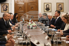 София (17 април 2024) Президентите на България и Италия Румен Радев и Серджо Матарела участват в пленарните разговори между официалните делегации.