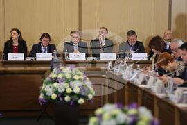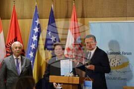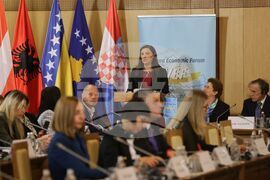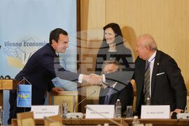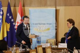 София (22 април 2024) В резиденция Бояна се провежда Виенски икономически форум - Софийска среща 2024 (VIENNA ECONOMIC FORUM SOFIA MEETING 2024), където световни лидери, бизнес експерти и предприемачи обсъждат най-актуалните предизвикателства и възможности пред регионалната и глобална икономика. На снимката (от ляво надясно): посланик д-р Елена Кирчева, основател и генерален секретар на Виенски икономически форум, директорът на Дипломатическата академия във Виена посланик д-р Емил Брикс, премиерът на Косово Албин Курти, заместник-министърът на иновациите и растежа Веселина Минчева и изпълнителният директор на Българската агенция за инвестиции (БАИ) Мила Ненова.