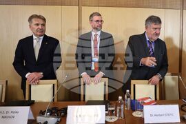 София (22 април 2024) В резиденция Бояна се провежда Виенски икономически форум - Софийска среща 2024 (VIENNA ECONOMIC FORUM SOFIA MEETING 2024), където световни лидери, бизнес експерти и предприемачи обсъждат най-актуалните предизвикателства и възможности пред регионалната и глобална икономика. На снимката (от ляво надясно): служебният министър на икономиката и индустрията Петко Николов, ръководителят на представителството на ЕИБ в Република Северна Македония Бьорн Габриел, д-р Хърбърт Степич.