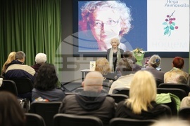 Бургас (23 април 2024) Писателката Неда Антонова (на снимката) гостува на Регионална библиотека „Пейо К. Яворов“. Авторката представя пред бургаската публика новия си роман „Плодовете зреят нощем”.
