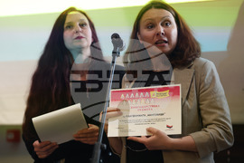 София (23 април 2024) В Световния ден на книгата и авторското право се връчва престижната награда „Рицар на книгата“. Организатор на събитието е Асоциация „Българска книга“ (АБК). Тази година наградите се присъждат за изключителни заслуги в областта на книгите и четенето за изминалата 2023 г. и включват четири категории, а номинираните са изявени учители, журналисти, писатели, преводачи, създатели на онлайн платформи, както и цели библиотеки и учебни заведения. На снимката: председателят на Управителния съвет на АБК Десислава Алексиева (вляво) връчва наградата за медия или журналист на онлайн платформата за четене „Книговище“.