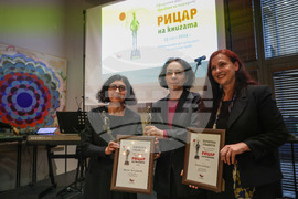 София (23 април 2024) В Световния ден на книгата и авторското право се връчва престижната награда „Рицар на книгата“. Организатор на събитието е Асоциация „Българска книга“ (АБК). Тази година наградите се присъждат за изключителни заслуги в областта на книгите и четенето за изминалата 2023 г. и включват четири категории, а номинираните са изявени учители, журналисти, писатели, преводачи, създатели на онлайн платформи, както и цели библиотеки и учебни заведения. На снимката (от ляво надясно): литературният критик Биляна Курташева, заместник-кметът по направление "Култура, образование, спорт и младежки дейности" Яна Генова и председателят на Управителния съвет на АБК Десислава Алексиева.