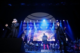 София (23 април 2024) Юбилеен концерт по повод 40 години на сцена на братя Аргирови (Благовест и Светослав Аргирови) се провежда в зала 1 на НДК. На снимката: Светослав Аргиров (в средата) и Благовест Аргиров.