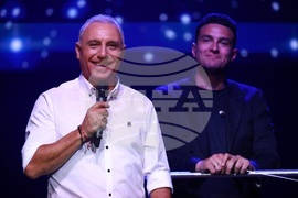 София (23 април 2024) Юбилеен концерт по повод 40 години на сцена на братя Аргирови (Благовест и Светослав Аргирови) се провежда в зала 1 на НДК. На снимката: Христо Стоичков и диригентът Димитър Косев (вдясно).