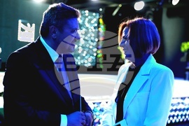 София (23 април 2024) Холивудски знаменитости и представители на културния и бизнес елит пристигнат в JOY Station в София, за 15-тата официална церемония, за връчването на наградите на фондация „Стоян Камбарев“, за „Полет в изкуството“, както и на наградата за „Кино 355“. На снимката: генералният директор на БТА Кирил Вълчев и бившият кмет на София Йорданка Фандъкова.