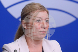 София (25 април 2024) В Националния пресклуб на БТА - София се представя съюза от десни консервативни партии, както и водещите политики и решения, с които „Синя България“ ще се яви в кампанията за ЕП и за народни представители в българския парламент. Организатор на събитието е Коалиция „Синя България“. На снимката: Любка Доинска.