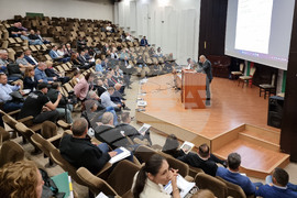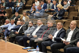 Варна (25 април 2024) В зала „Пленарна“ в сградата на общината, Общинският съвет във Варна провежда редовно заседание, в чиито дневен ред са включени 12 точки. На снимката: председателят на Общинския съвет във Варна Христо Димитров (в средата).