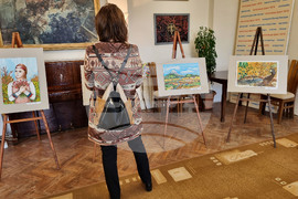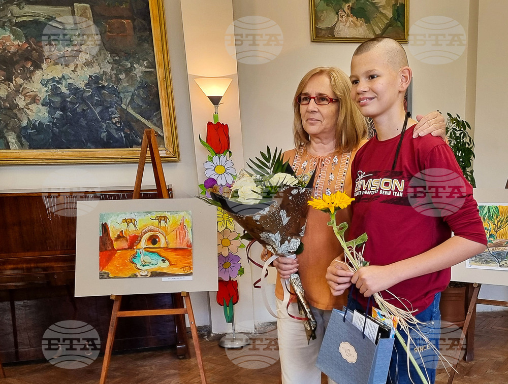 Видин (26 април 2024) Народно читалище „Цвят-1870“ представя изложба на рисунки на своя възпитаник Никалъс Венелинов. Той посещава школата по изобразително изкуство „Дъга“, а това е негова първа самостоятелна изложба. Да разгледат творбите и да подкрепят неговия талант на откриването на изложбата присъстваха негови приятели, съученици, преподаватели. На снимката: преподавателят по рисуване Антонина Славова и Никалъс Венелинов.