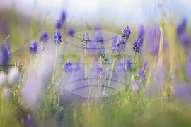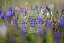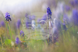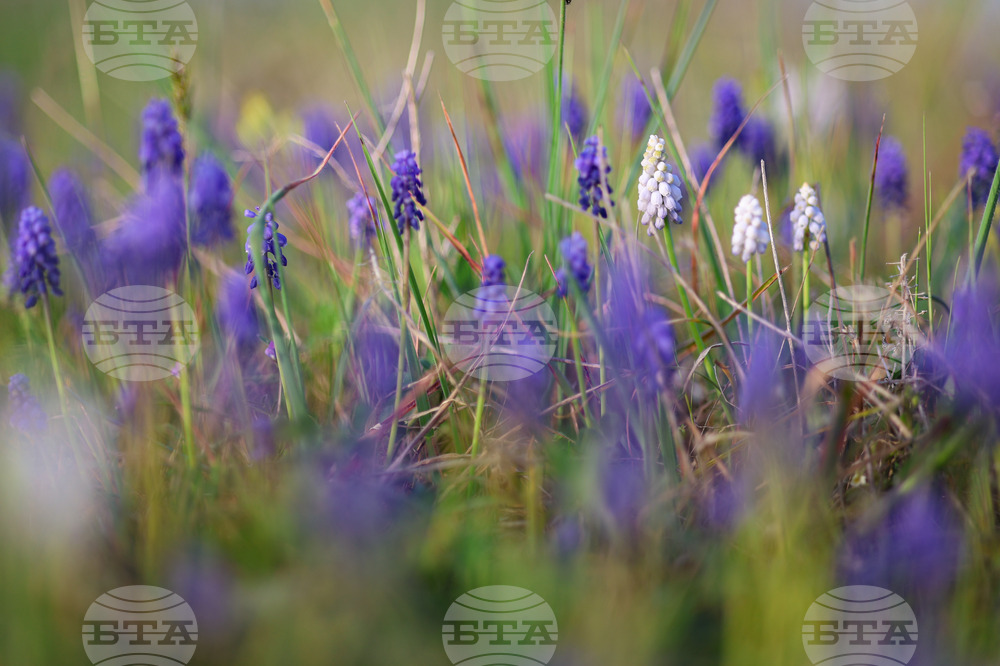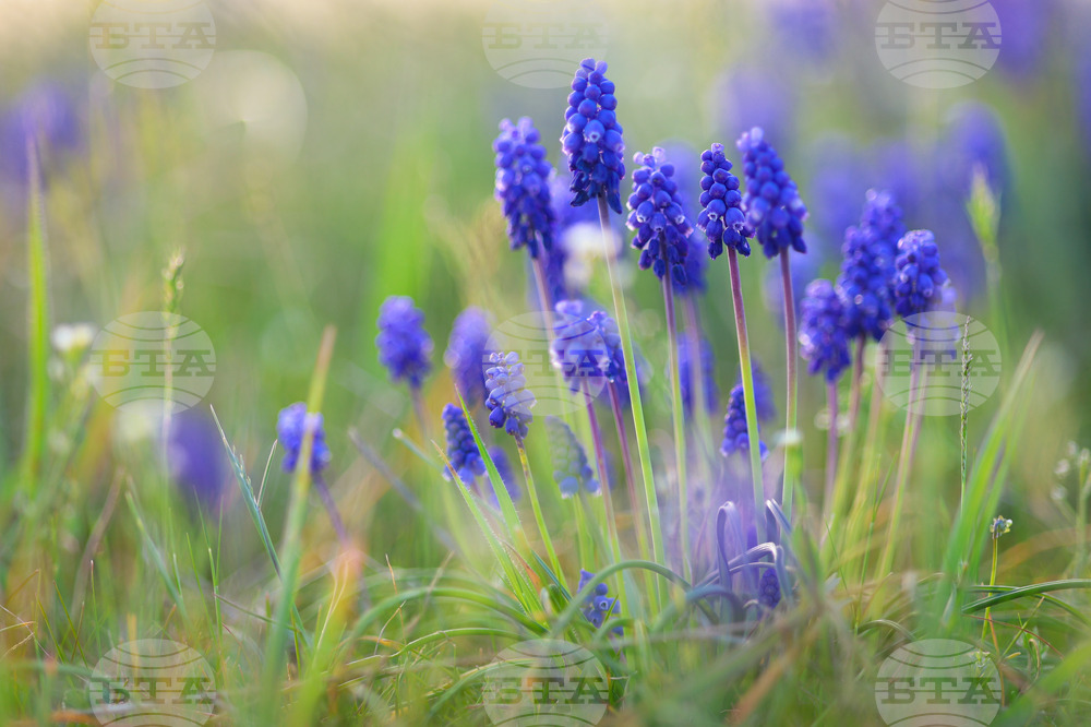 Бургас (26 април 2024) Пролетни цветя от вида Мускари, познати още като Кукувиче грозде. Луковичното растение цъфти през пролетта в различни нюанси на синьо, лилаво и по-рядко срещано в бяло. Може да се види в района на Мандренското езеро около Бургас.