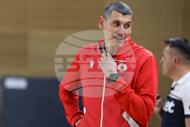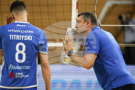 София (26 април 2024) Волейболистите на Левски София приемат ЦСКА в зала „Левски София” в третата финална среща от Първенството на България. На снимката: треньорът на Левски Владимир Николов.