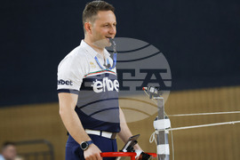 София (26 април 2024) Волейболистите на Левски София приемат ЦСКА в зала „Левски София” в третата финална среща от Първенството на България. Съдия на мача е Любомир Сираков (на снимката).