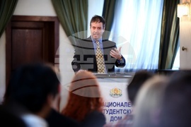 София (29 април 2024) Белгийският посланик Н. Пр. Фредерик Мьорис (на снимката) представя постиженията на белгийското председателство на ЕС до момента пред участниците в международния младежки семинар „Бъдещето на ЕС зависи от теб” в Националния студентски дом. Семинарът се организира от Националната студентска конфедерация съвместно със Съюза на европейските федералисти и Европейското младежко движение по програма „Еразъм+” на ЕС.