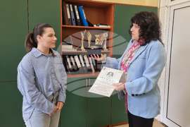 Разград (29 април 2024) Ученици от Профилираната гимназия с преподаване на чужди езици „Екзарх Йосиф“ в Разград постигнаха високи резултати в различни конкурси, съобщи директорът на училището Ивелина Христова. Тя изказа своите поздравления и гордост за творческите успехи на талантливите и трудолюбиви ученици, и техните ръководители. На снимката (от ляво надясно): Диляра Назиф и директорът на ПГПЧЕ "Екзарх Йосиф" - Разград Ивелина Христова.