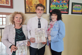 Разград (29 април 2024) Ученици от Профилираната гимназия с преподаване на чужди езици „Екзарх Йосиф“ в Разград постигнаха високи резултати в различни конкурси, съобщи директорът на училището Ивелина Христова. Тя изказа своите поздравления и гордост за творческите успехи на талантливите и трудолюбиви ученици, и техните ръководители. На снимката (от ляво надясно): Румяна Раденкова, преподавател по история и цивилизации в ПГПЧЕ „Екзарх Йосиф“, Йордан Панчев, ученик в 8 клас и директорът на ПГПЧЕ "Екзарх Йосиф" - Разград Ивелина Христова.