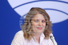 София (30 април 2024) В Националния пресклуб на БТА - София се провежда пресконференция на Сергей Станишев - член на Делегацията на българските социалисти в Европейския парламент. Сред основните теми се: кризата на политическата система у нас, предизвикателствата пред Европа и България в променящия се свят и процесите в лявото. На снимката: Мария Дивизиева.