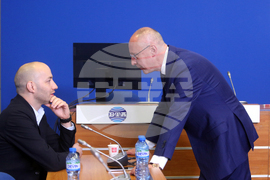 София (30 април 2024) В Националния пресклуб на БТА - София се провежда пресконференция на Сергей Станишев - член на Делегацията на българските социалисти в Европейския парламент. Сред основните теми се: кризата на политическата система у нас, предизвикателствата пред Европа и България в променящия се свят и процесите в лявото. На снимката (от ляво надясно): политологът Димитър Ганев и Сергей Станишев.