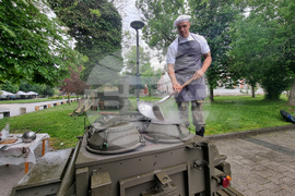 Атракцията за малкото минувачи в дъждовното време през централния плевенски площад "Възраждане" е военната полева кухня, в която майстор готвач приготви боб чорба. От плевенския клуб "Традиция" представиха изложение на оръжие от периода на Руско-турската освободителна война (1877 – 1878 г.).