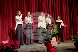 Разград (30 април 2024) С тържествен концерт-спектакъл учениците и учителите от Профилираната гимназия с преподаване на чужди езици „Екзарх Йосиф“ в Разград отбелязват патронния си празник и 139 години от основаването на училището. На сцената на Общинския културен център се изявиха даровити възпитаници на гимназията в различни области на знанието и изкуството. С изпълненията си те поздравяват своите учители, близки и гости, уважили празника. На снимката: Ивелина Христова.