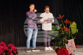 Разград (30 април 2024) С тържествен концерт-спектакъл учениците и учителите от Профилираната гимназия с преподаване на чужди езици „Екзарх Йосиф“ в Разград отбелязват патронния си празник и 139 години от основаването на училището. На сцената на Общинския културен център се изявиха даровити възпитаници на гимназията в различни области на знанието и изкуството. С изпълненията си те поздравяват своите учители, близки и гости, уважили празника. На снимката: Добрин Добрев.