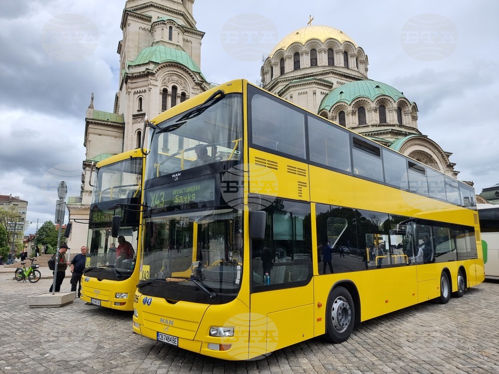 София (1 май 2024) „Столичният автотранспорт" провежда информационен ден за двуетажните автобуси на площад „Свети Александър Невски", които предстои да се движат в от центъра на София до Банкя. Посетителите имат възможност да се запознаят с разписанието, както и да се снимат на шофьорското място.