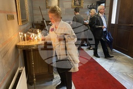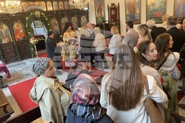 Истанбул (2 май 2024) Свещеникът Архимандрит Харалампи Ничев по време на служба в църквата Свети Йоан Рилски в Екзархийския дом в Истанбул. Православните българи в Истанбул почитат религиозните обичаи, палят свещи, черкуват се, посещават църковните служби.