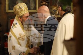 София (3 май 2024) Днес е Велики петък от Страстната седмица. Това е най-скръбният ден за християните. В него си припомняме страданията, съденето, разпъването на кръста, смъртта и погребението на Иисус Христос. В Софийския митрополитски катедрален храм „Св. Вмчца Неделя“, Негово Преосвещенство Белоградчишкия епископ Поликарп (вдясно) отслужва така нареченото богослужение Опело Христово. На снимката: Симеон Сакскобургготски (вляво).