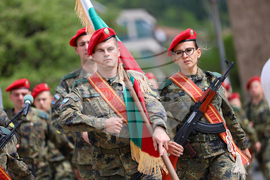 Благоевград (4 май 2024) С възпоменателно шествие и ритуал по полагане на венци и цветя пред паметника на Гоце Делчев, в Благоевград се отбелязва 121 години от смъртта на революционера. Честванията са организирани от Регионален исторически музей - Благоевград, Регионален клуб Традиция „Георги Измирлиев Македончето“ - Благоевград, Сдружение 14-ти пехотен Македонски полк - Благоевград, Военно формирование 26400 и Община Благоевград. На снимката: командирът на 3-то бригадно командване полковник Кирил Спаневиков.