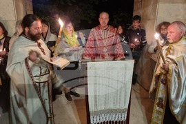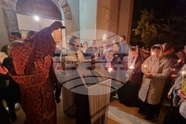 Хасково (5 май 2024) Стотици миряни се събраха за службата за Възкресение Христово в храма „Свети Димитър“ в Хасково. Отец Серафим (вляво) и отец Петър (вдясно) на снимка 4 водеха Пасхата, а точно в 0:00 часа камбаните възвестиха Възкрсението на Спасителя.