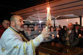 Самоков (5 май 2024) Хиляди самоковци се събраха в Митрополитската църква "Успение Богородично", за да посрещнат заедно Възкресение Христово. Миряните се събраха, за да вземат и от благодатния огън. Архиерейският наместник на Самоковска духовна околия, ставрофорен иконом Михаил Колев оглави архиерейска света литургия за Възкресение Христово - Пасха.