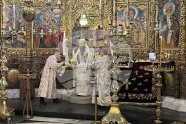 Рилски манастир (5 май 2024) Великден в Рилската света обител - Рилски манастир. На снимката: Игуменът на Рилския манастир епископ Евлогий (ляво).