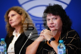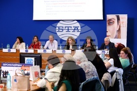София (8 май 2024) В Националния пресклуб на БТА - София се провежда пресконференция по повод националната кампания за профилактика на рака на кожата „ЕВРОМЕЛАНОМА 2024“. На снимката (от ляво надясно): проф. Снежина Василева, дерматолог в Александровска болница, началникът на Клиниката по дерматология и венерология в болница "Токуда" проф. Здравка Демерджиева.