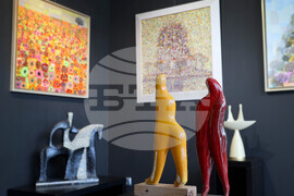 Варна (8 май 2024) Арт Галерия Le Papillon представя с дебют в град Варна скулптурите на Георги Миленов (ляво) и живописните платна на Наталия Абаева (дясно).