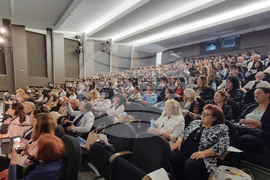 Габрово (8 май 2024) В Габрово се провежда областен научен форум на тема „Изкуственият интелект в 21 век – възможности и приложение“. Организатори на събитието са Синдикат на българските учители - Габрово, съвместно с Община Габрово и Природоматематическа гимназия „Акад. Иван Гюзелев“ – Габрово, както и в партньорство с национална секция „Средно образование“ към Изпълнителния комитет на Синдиката на българските учители (СБУ). На снимката: мотивационният лектор Петър Иванов.