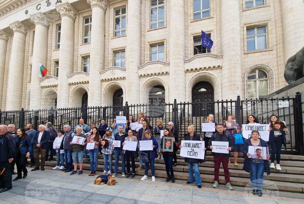 София (8 май 2024) Роднини и приятели на убития Пейо Пеев се събраха на протест пред Съдебната палата.