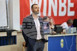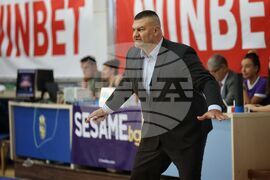 Бургас (8 май 2024) В Спортна зала "Бойчо Брънзов" се провежда баскетболна среща между мъжките отбори на Черноморец (Бургас) и Балкан (Ботевград). Мачът е полуфинал от плейофите на Националната баскетболна лига. На снимката: старши треньорът на Балкан Васил Христов.