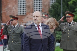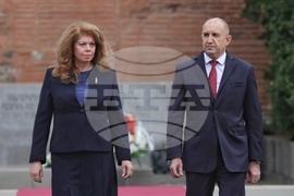 София (9 май 2024) Президентът Румен Радев и вицепрезидентът поднасят цветя пред Паметника на Незнайния воин, по повод отбелязването на 79 години от победата над нацизма във Втората световна война.