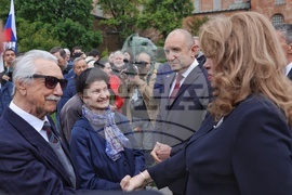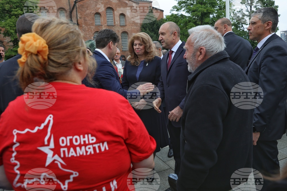 София (9 май 2024) Президентът Румен Радев и вицепрезидентът Илияна Йотова, след като поднесоха цветя пред Паметника на Незнайния воин, по повод отбелязването на 79 години от победата над нацизма във Втората световна война се срещат с граждани.