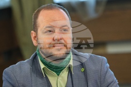 София (9 май 2024) В сградата на Национален студентски дом, Националната студентска конфедерация съвместно с Европейското младежко движение и Съюза на европейските федералисти организират публична дискусия на тема „Европейски диалог: Идеи за по-добра Европа”. На снимката: кандидатът за член на Европейския парламент Борислав Сандов (Зелено движение).
