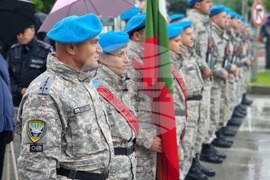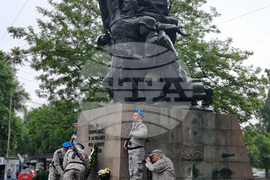 Ямбол (9 май 2024) Ямбол отбеляза Деня на Европа и Деня на победата над хитлерофашизма с тържествено честване. Пред на паметника на Георги Дражев и загиналите във войните ямболци в стария квартал „Каргон“ се състоя военен ритуал. Свещениците отец Стоян (ляво) и отец Жельо отслужиха благодарствен молебен.