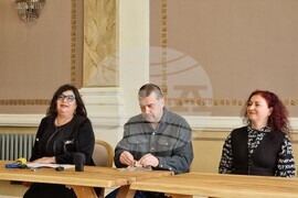 Варна (9 май 2024) На пресконференция в зала „Одесос“ на Регионалния исторически музей (от ляво надясно): директорът на музея Игор Лазаренко, областният управител на Варна проф. Андрияна Андреева обявяват предстоящото на 11 май мото шествие под наслов „По пътя на вярата и буквите“, което ще премине през паметници на културно-историческото наследство в Шуменска и Варненска област.