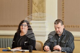 Варна (9 май 2024) На пресконференция в зала „Одесос“ на Регионалния исторически музей (от ляво надясно): областният управител на Варна проф. Андрияна Андреева, директорът на музея Игор Лазаренко обявяват предстоящото на 11 май мото шествие под наслов „По пътя на вярата и буквите“, което ще премине през паметници на културно-историческото наследство в Шуменска и Варненска област.