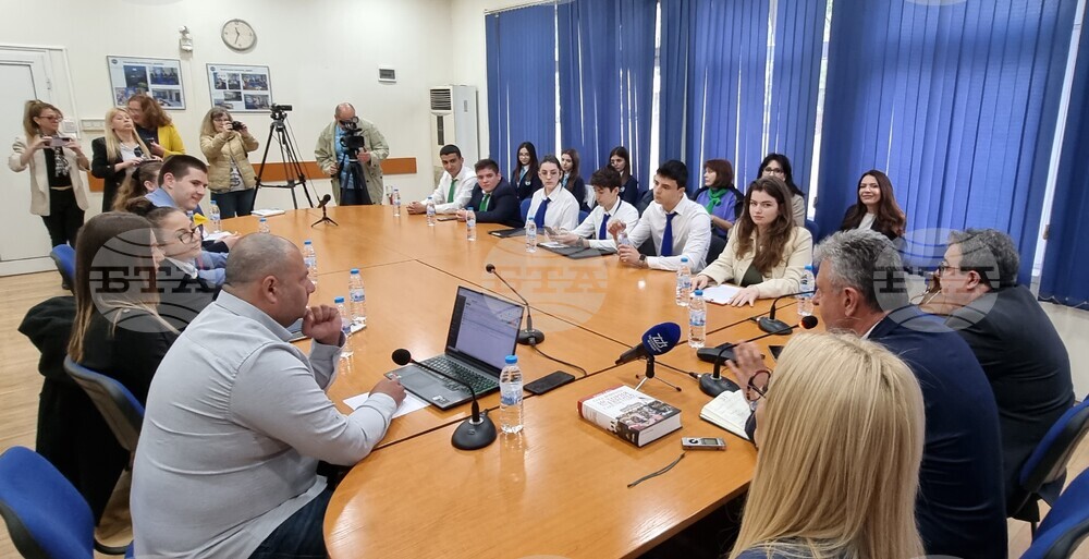 Шумен (9 май 2024) По инициатива на областния управител проф. Добромир Добрев (в средата) на 9 май - Ден на Европа в Националния пресклуб на БТА в Шумен се състоя кръгла маса на тема „Нашата Европа“. В нея участват още председателят на Общинския съвет Ася Аспарухова (дясно), доц. Стефан Минков (ляво) от Шуменския университет „Епископ Константин Преславски“, преподаватели, студенти и ученици.