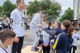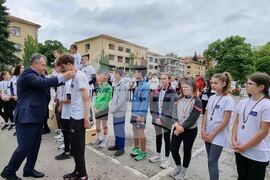Шумен (9 май 2024) Над 150 ученици от Шумен се включиха в смесената лекоатлетическа щафета „Европа“, посветена на 9 май. Кметът на Шумен проф. Христо Христов награждава победителите.