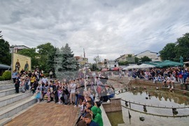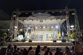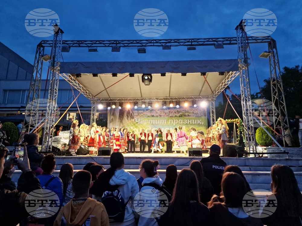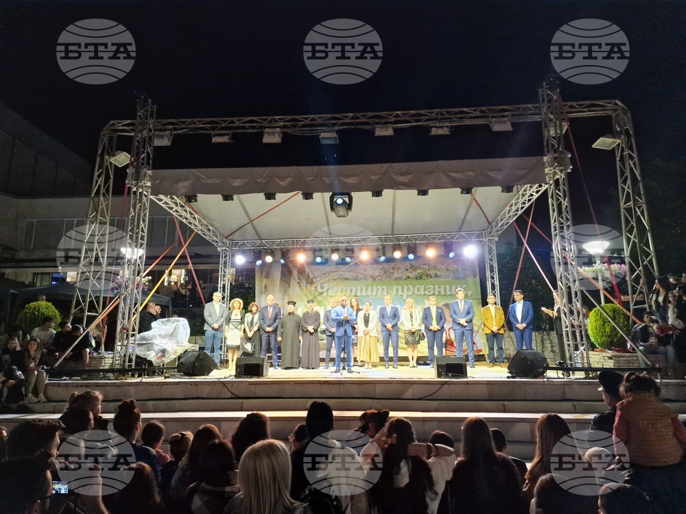 Сандански (9 май 2024) Сандански отбелязва своя празник. По традиция градът празнува на Светли четвъртък, през първата седмица след Великден, с Решение 38 на Общинския съвет от 9 март 1993 г., сочи справка на отдел "Справочна" на БТА. В днешния ден програмата започна с водосвет, програма на Народно читалище „Отец Паисий-1919“, както и традиционните народни борби. Кулминацията на празненствата бе тази вечер с концерт на площад „България“, в който участие взеха децата на Сандански, Торино и Пашата, Ансамбълът за народни песни и танци „Никола Вапцаров“, Духов оркестър – Сандански и др. На снимката: кметът на Сандански Атанас Стоянов.